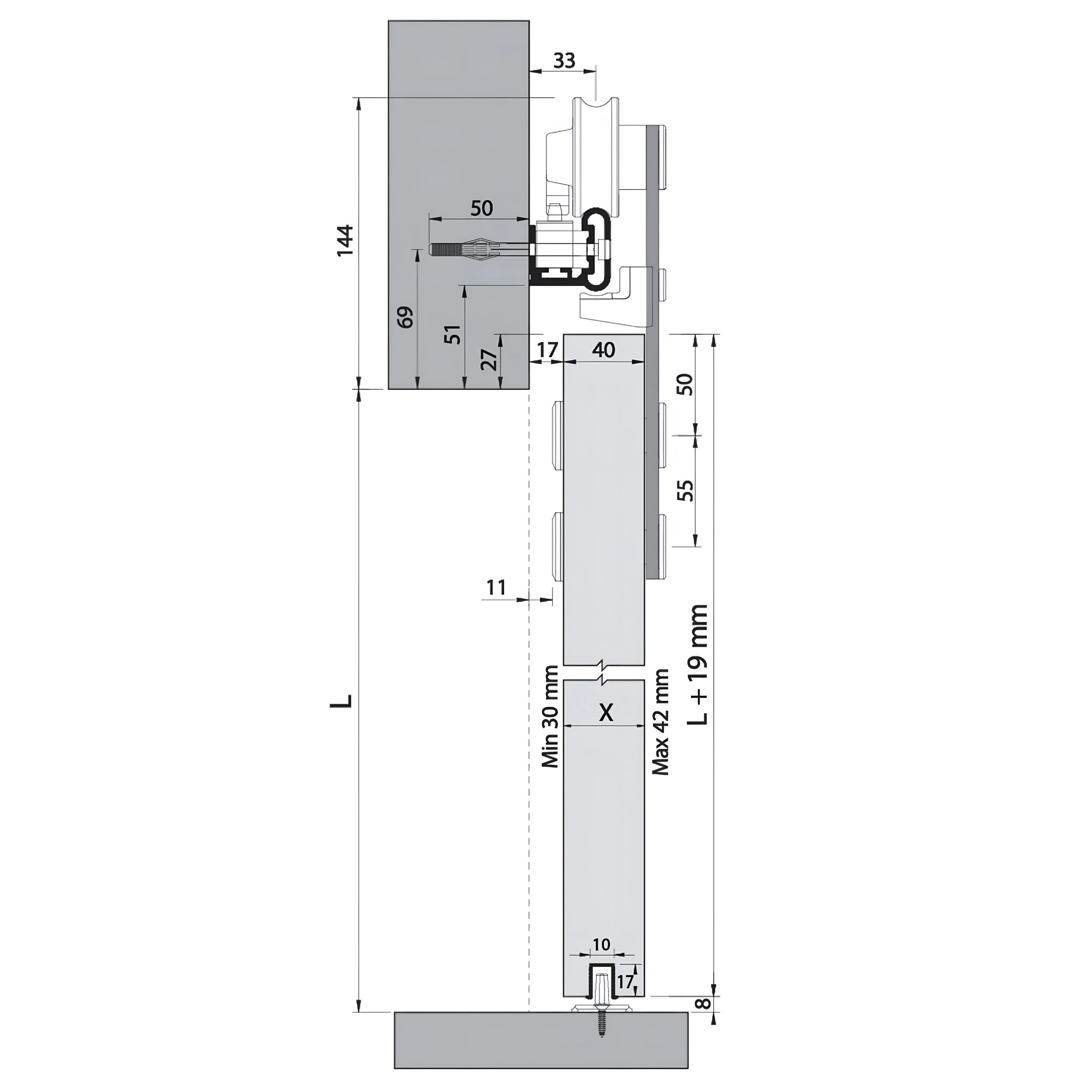 انتخاب یراق مناسب، مستقیماً به ابعاد درب شما بستگی دارد. مکانیزم درب آویز روستیک آلباتور برای دربهایی با ضخامت ۳۲ تا ۵۰ میلیمتر طراحی شده است. این بازه ضخامت، طیف وسیعی از دربهای موجود در بازار را پوشش میدهد. علاوه بر این، عرض درب باید حداقل ۶۵ سانتیمتر باشد تا عملکرد صحیح مکانیزم تضمین شود و درب به راحتی روی ریل حرکت کند.