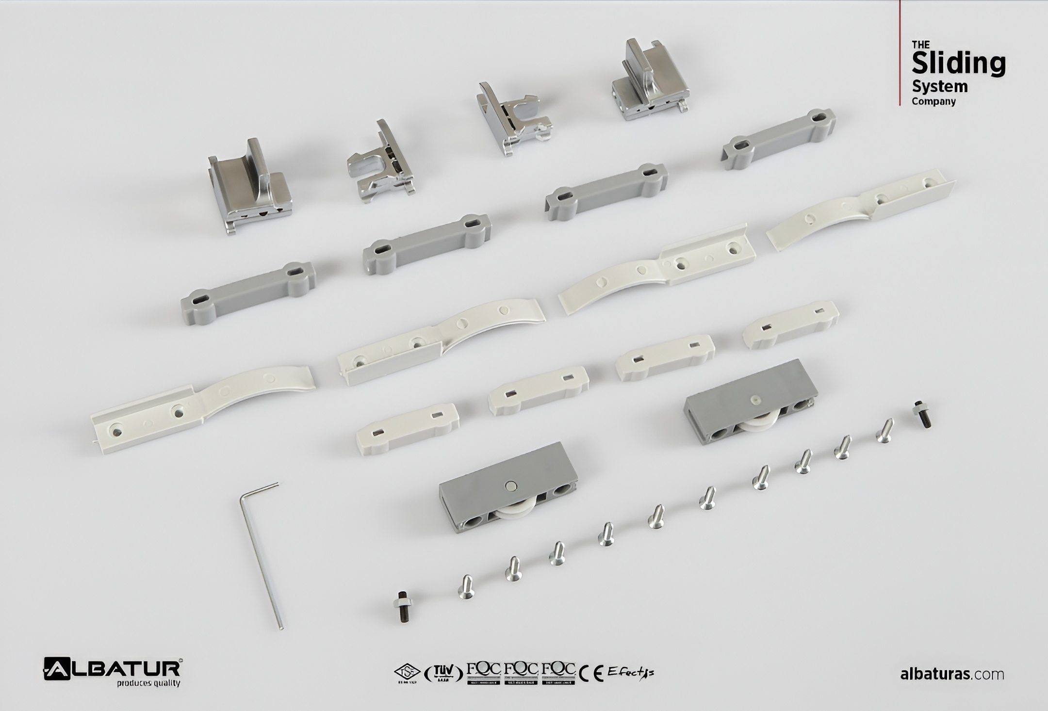 این قرقرهها قلب تپنده مکانیزم هستند. هر درب به دو عدد از این قرقرههای باکیفیت و مستحکم مجهز میشود. بلبرینگهای به کار رفته در این قرقرهها، اصطکاک را به حداقل میرسانند و باعث میشوند که درب به راحتی و بدون نیاز به نیروی زیاد حرکت کند. این قطعات نقشی حیاتی در تضمین حرکت روان و بیصدای دربها ایفا میکنند.