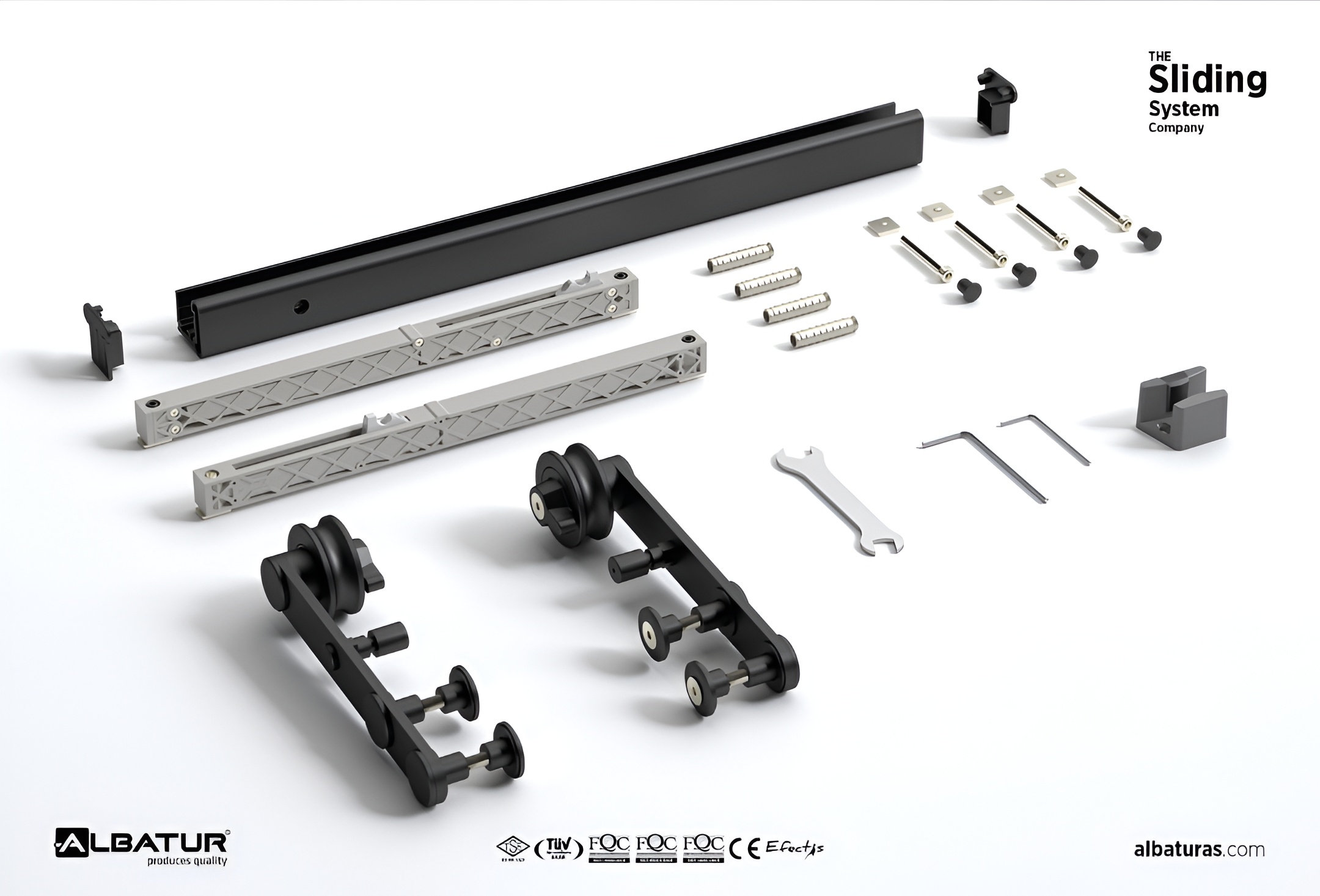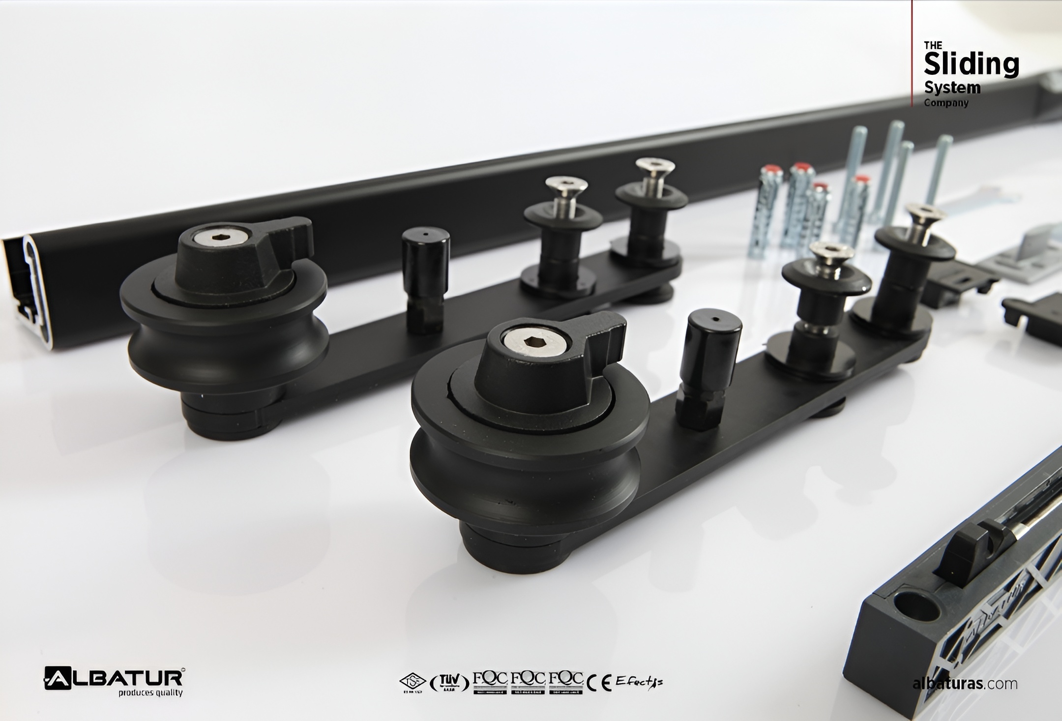 ریل از جنس آلومینیوم با پوشش مقاوم و قرقرهها با بلبرینگهای باکیفیت ساخته شدهاند که حرکت درب را بسیار روان و بیصدا میکنند. این قطعات با دقت مهندسی شدهاند تا علاوه بر زیبایی، عملکردی بینقص و طولانیمدت داشته باشند.