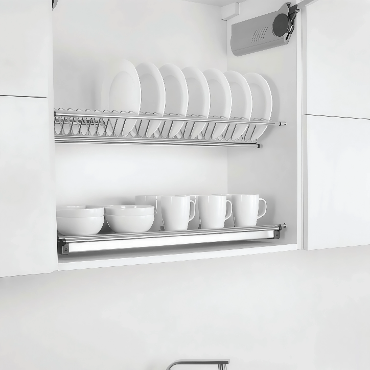 وجود دو طبقه باعث میشود که فضای آشپزخانه به شکل بهینه استفاده شود و تمام ظروف شما بدون آسیب و با دسترسی آسان در دسترس باشند. این ویژگی برای خانوادههای پرجمعیت و آشپزخانههای شلوغ اهمیت ویژهای دارد.