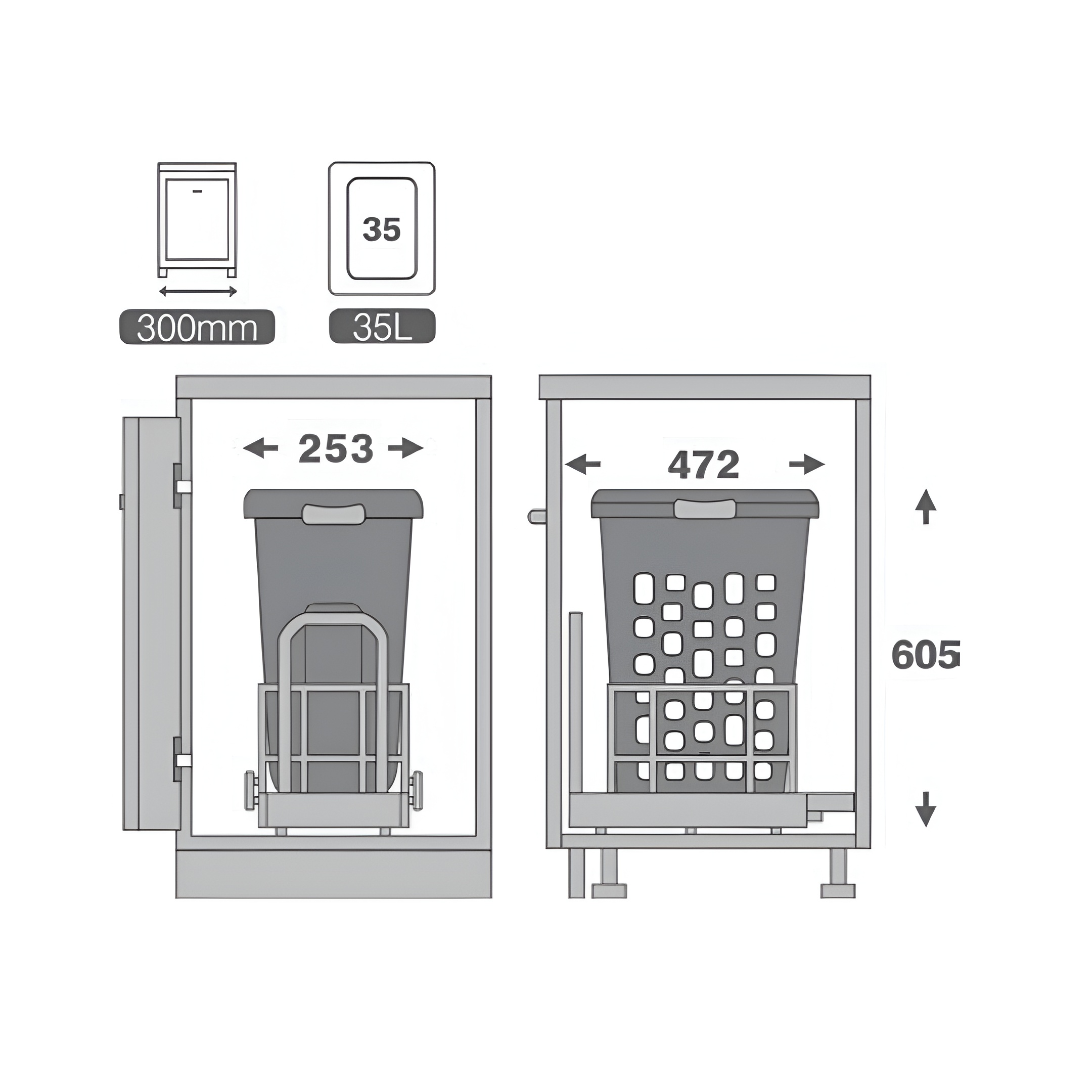 انتخاب درست یک سبد رخت چرک ریلی به میزان زیادی وابسته به تناسب آن با یونیت یا فضای داخلی کمد شماست. مدل ۹۱۵۳ ملونی به طور خاص برای یونیت ۳۰ سانتیمتر طراحی شده است. این به معنای آن است که اگر عرض داخلی کابینت شما حداقل ۳۰ سانتیمتر باشد، این سبد به راحتی نصب شده و عملکرد بینقصی را ارائه خواهد داد. ابعاد دقیق این محصول شامل ارتفاع ۶۰.۵ سانتیمتر، طول ۴۷.۲ سانتیمتر و عرض ۲۵.۳ سانتیمتر است. این تناسب دقیق در ابعاد، اطمینان میدهد که حتی در فضاهای محدود نیز بالاترین کارایی را بدون هدر رفتن فضا داشته باشید. حجم سبد نیز ۳۵ لیتر است که ظرفیتی بسیار مناسب برای یک سبد رخت چرک تکمخزنه در محیطهای کوچک تا متوسط محسوب میشود و نیازهای هفتگی یک خانواده را به خوبی پوشش میدهد.