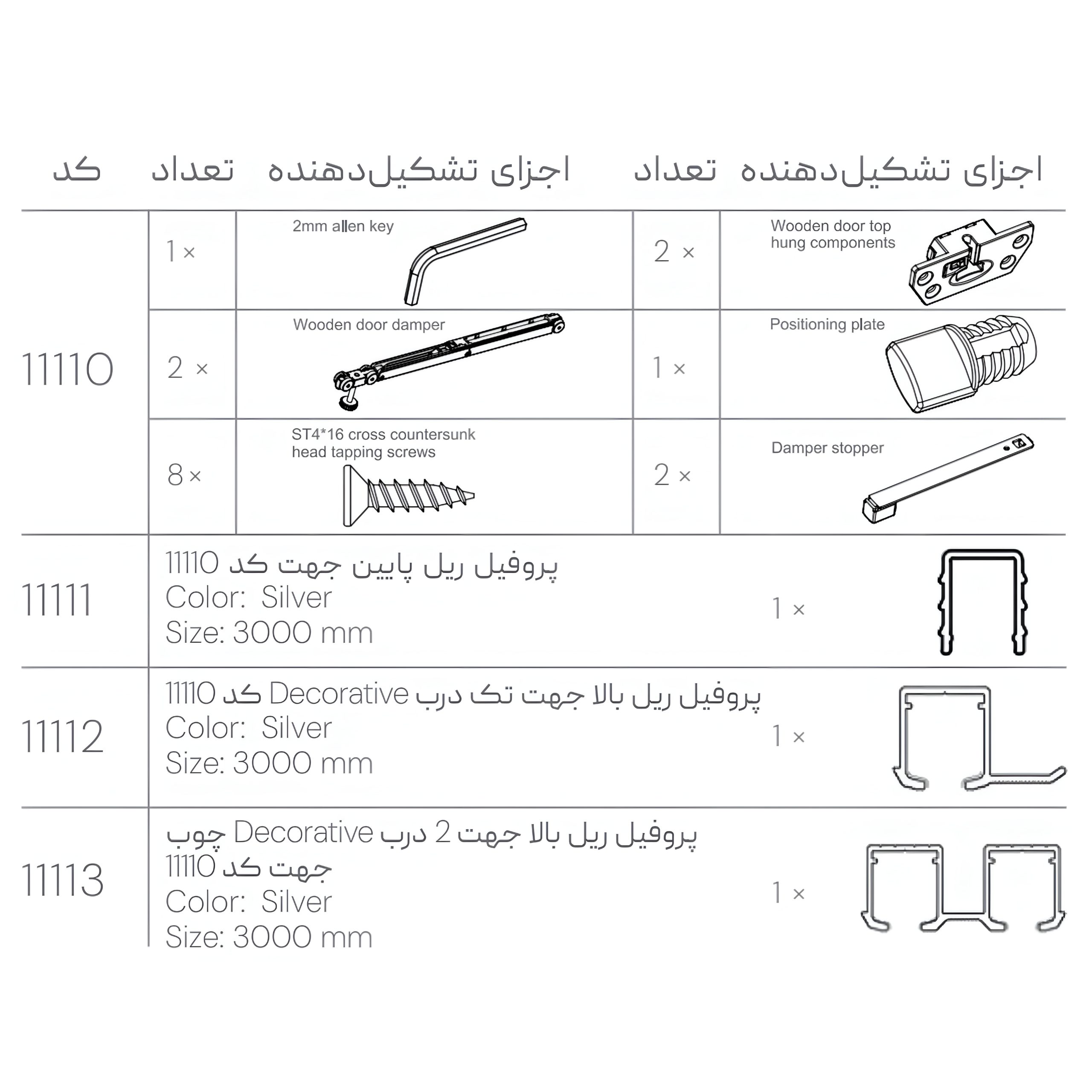 مشخصات فنی کامل مکانیزم درب ریلی آرامبند ۱۵ کیلویی ملونی کد ۱۱۱۱۰