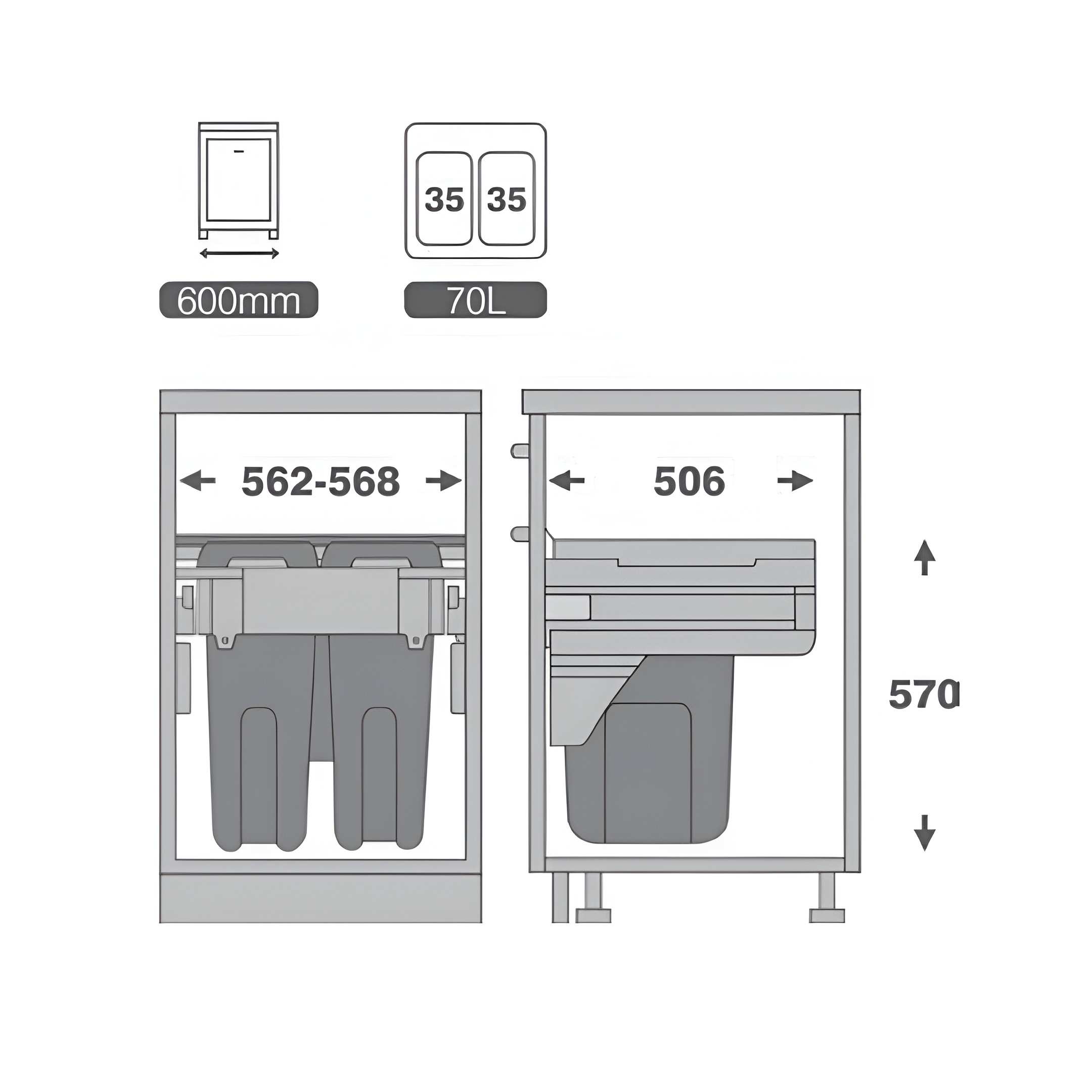ابعاد استاندارد و ویژگیهای سطل زباله دوقلو برای یونیت ۶۰ سانتیمتری