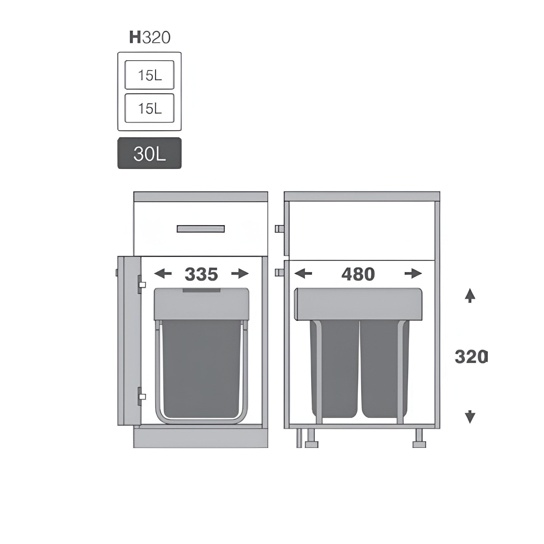 مشخصات و ابعاد سطل زباله توکار دو مخزنه مناسب یونیت ۴۰ سانتیمتری