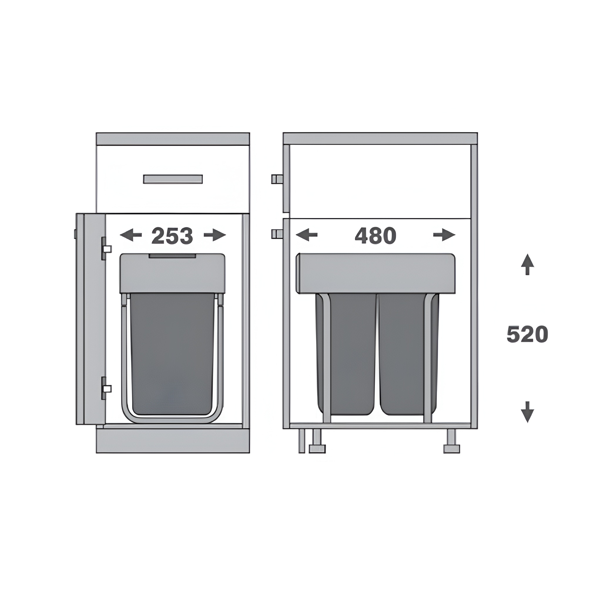 یکی از مهمترین نکات برای انتخاب سطل زباله توکار، توجه دقیق به ابعاد یونیت نصب است. سطل زباله داخل کابینت ریلی ملونی ۹۲۱۰ به طور ویژه برای نصب در یونیتهای کوچک طراحی شده است. عرض یونیت مورد نیاز تنها ۳۰ سانتیمتر است که آن را برای آشپزخانههایی با فضای محدود یا کابینتهای باریک بسیار مناسب میسازد. ابعاد دقیق خود سطل زباله داخل کابینت ریلی ملونی ۹۲۱۰ شامل ارتفاع ۵۲، طول ۴۸ و عرض ۲۵.۳ سانتیمتر است. این تناسب ابعادی هوشمندانه، سبب میشود که از حداقل فضای ممکن، حداکثر بهرهوری حاصل شود و فضای زیر سینک یا سایر یونیتهای شما به نحو احسن مدیریت گردد.