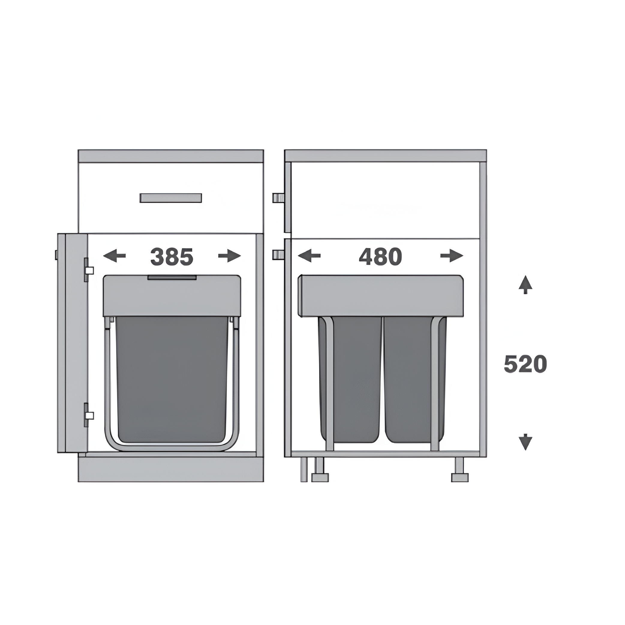 انتخاب یک سطل زباله توکار مناسب، کاملاً به ابعاد یونیت کابینت شما بستگی دارد. سطل زباله کابینتی ریلی دو مخزن آرام بند ملونی مدل ۹۲۱۲ که یکی از پرظرفیتترین مدلهای بازار است، با وجود گنجایش بسیار بالای خود، بهطور هوشمندانه برای نصب در کابینتهایی با عرض یونیت ۴۵ سانتیمتر طراحی شده است. این ابعاد استاندارد کابینت، امکان نصب آسان را در اکثر آشپزخانههای ایرانی فراهم میسازد. ابعاد دقیق کلی سطل ۳۸.۵ سانتیمتر عرض، ۴۸ سانتیمتر عمق و ۵۲ سانتیمتر ارتفاع است. تطابق دقیق این ابعاد با یونیت ۴۵ سانتیمتری، اطمینان میدهد که سطل زباله توکار با نهایت کارایی و بدون هدر رفت فضا نصب خواهد شد.